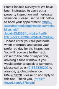 When we receive a Mortgage Valuation request from a Bank or Building Society, as long as we have been provided with your mobile number, wherever possible our first contact with you will be to send you a text message with a link for you to be able to book your own appointment. This enables you to do this at your convenience outside normal working hours.